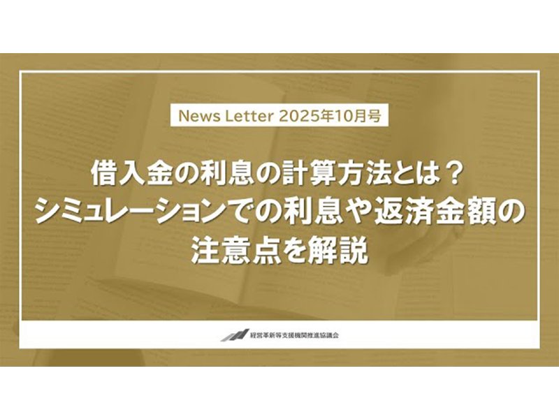 10月新着情報&新着動画 投稿日時 2025年10月1日 借入金の利息の計算方法とは?シミュレーションでの利息や返済金額の注意点を解説 【2025年10月号】借入金利息の計算方法 ご案内資料ダウンロード賃上げに取り組む企業を支援!助成金・補助金支援策まとめ 【2025年10月号】賃上げ支援策まとめ ご案内資料ダウンロード